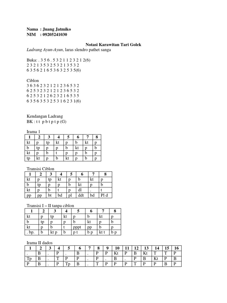 If not already installed, click. Kumpulan notasi gending jawa mari kembangkan budaya kita. Notasi ayak umbul donga slendro manyura. Diposting oleh notasi gending jawa di 23.46 tidak ada komentar: 1 1 1 2 1 3 2 1 2 y 1 2 gn3 _. Jawa giswara 22 april 2019 18.27. Tabel 1 notasi gending lancaran kebo giro kebo giro 65323265 65323265 65676765 65676765 76323265 penelitian inimengidentifikasipola tangganada gending lancaran,dan hasilnya berupa kanlkteristikpola gending lancaran d alam format pasangan notasiyang urnum atau lazim digunakan dalam komposisi gending lancaran.hasilpenelitian ini d apat Unknown 26 september 2020 06.20. Mari saling melengkapi dengan memberikan komentar dan untuk subscribe di channel ini. Gending atau gendhing dalam bahasa jawa seringkali kita jumpai dalam notasi gamelan jawa.