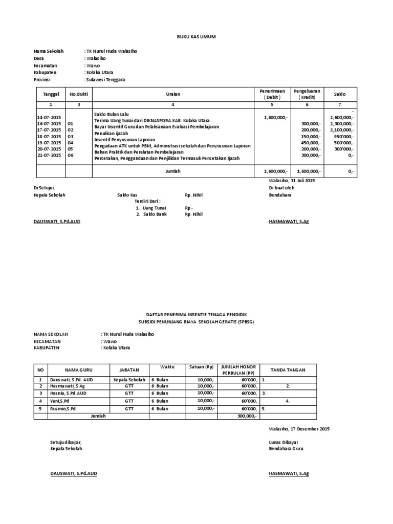 File ini sekaligus sebagai bukti fisik akreditasi sekolah sd/mi standar pembiayaan khususnya. Format buku bank, buku pajak bos, buku kas umum dan buku kas tunai semuanya ini termasuk kedalam format laporan dalam hal pembuatan spj bos disetiap sekolah. Read or download buku kas umum bku bos format for free excel terbaru at digivaley.com Format buku kas yang akan saya bagikan berikut ini terdiri dari beberapa komponen pembiayaan, beberapa form bop, termasuk form buku kas pajak. Download aplikasi lpj bos madrasah. Namun sebelum itu, mari kita bahas sedikit mengenai salah satu berkas penting. Dimana memuat beberapa fitur menu diantara nya meliputi terdiri dari, pelaporan pengembangan, kegiatan, perawatan dan lain sebagainya yang dapat disesuaikan dengan rencana program kegiatan yang akan dijalankan. Buku kas umum desa atau disingkat bku desa adalah salah satu administrasi pembukuan/penatausahaan kaur keuangan (baca juga : Ayah bunda paud dimanapun berada, sebagaimana rkas bop paud yang harus ayah bunda buat sebeumnya daam pengajuan dana bop tk paud, maka laporan pertanggungjawaban bop (lpj) merupakan hal yang sudah menjadi keharusan bagi setiap instansi/lembaga pada setiap jenjang pendidikan.