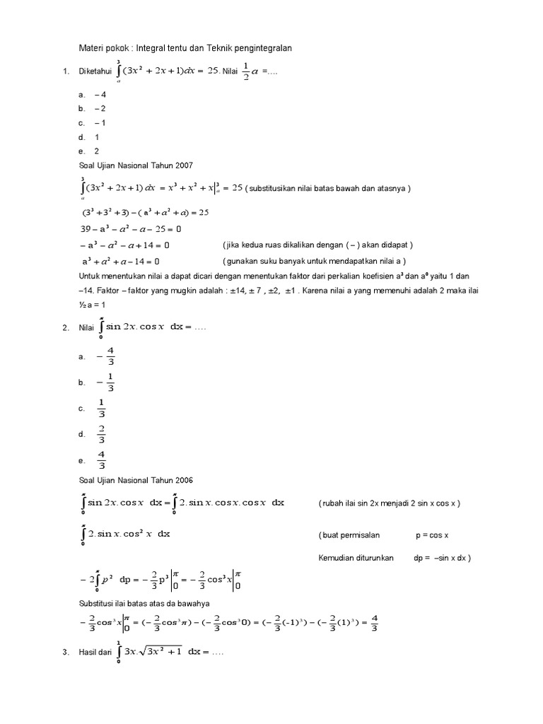 Assalamualaikum wr wb salam sejahatera untuk semuanya. Integral trigonometri fungsi beserta contoh soal dan jawaban matematika contoh soal fungsi eksponensial pilihan ganda dan kunci jawaban beserta pembahasan bilangan eksponen merupakan bentuk angka yang bersifat perkalian dengan angka yang sama sehingga kemudian angka tersebut dapat diulang dengan makna yang sama sebagai singkatnya dari. Untuk mengerjakan latihan soal ini ini, anak didik harus bisa memahami pertanyaan : Contoh soal pilihan ganda integral dan pembahasan. Contoh soal integral tentu, tak tentu, substitusi, parsial, trigonometri. Soal pemanasan global global warming pilihan ganda pembahasan merupakan materi ipa kelas 7 dan juga fisika kelas 11 sma yang wajib siswa pelajari tentang pemanasan global. Soal integral dan pembahasan 1. Kembali lagi dengan kita chanel link rumusbilangan.com, yang mana pada hari ini kita akan melanjutkan kembali pembahasan. Soal soal integral dan pembahasan ini diambil dari soal soal un ebtanas dan soal uassoal integral ini sudah dilengkapi dengan pembahasan lengkapnya.