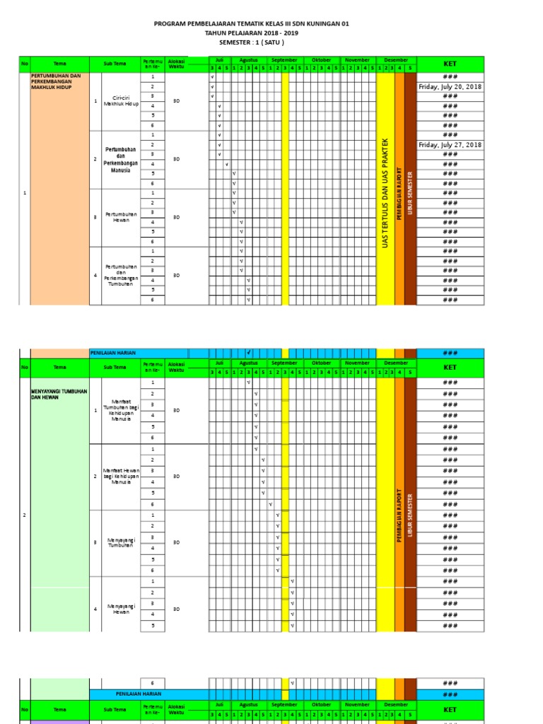 Kegiatan belajar mengajar tidak akan berjalan sesuai prosedur apabila salah satu dari perangkat pembelajaran diabaikan begitu saja. Rencana kegiatan program semester merupakan rencana kegiatan yang terkait dengan kegiatan kurikulum dalam rentang satu semester atau setara dengan enam bulan waktu kalender. Dengan membuat program semester sehingga untuk membuat perangkat pembelajaran rpp bisa memakai. Seperti biasanya program semester ini berlangsung selama 19 minggu kerja, termasuk penyelenggaraan tatap muka, tengah semester dan ujian semester. Download daftar nilai harian sd kurikulum 2013 revisi 2020; Program semester ini menguraikan hasil dalam garis besar pada setiap studi atau mata pelajaran sesuai dengan yang tercantum dalam program tahunan (prota). Promes matematika smp kelas 8 k13 revisi th 2021/2022. Promes k13 smp revisi terbaru untuk semua kelas. Promes k13 tematik terpadu kelas 5 semester 2 ini masih kurang dari kata sempurna, jika ada kekurangan bapak ibu dewan guru dapat merevisi atau menambahkannya sesuai dengan yang dibutuhkan.