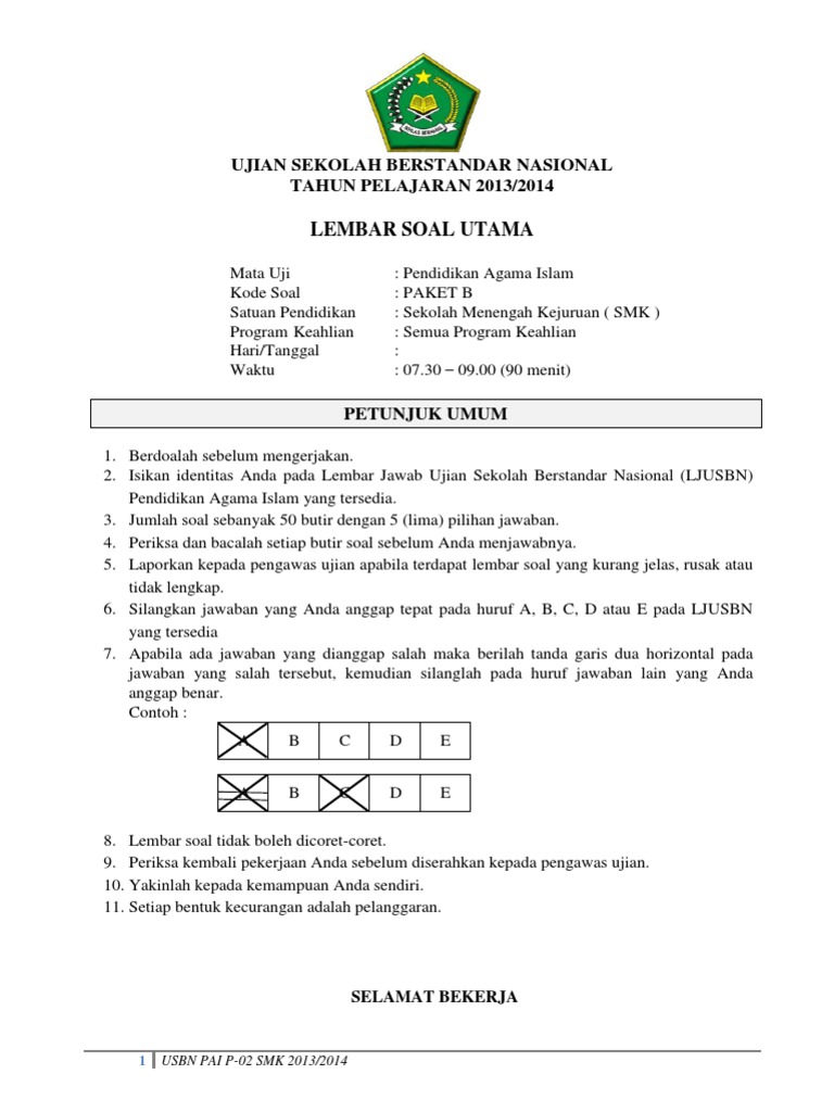 Soal Usbn Pai Smk 2018. Kisi kisi usbn pai sd/smp/sma/smk 2018 ktsp dan kurikulum 2013 ini merupakan file terbaru yang akan anda butuhkan dalam membuat persiapan siswa menghadapi kegiatan ujian sekolah berstandar nasional tahun ini. (1) mahmud setiap jumat memberikan infaq di sekolahnya. Pendidikan agama islam (pai) adalah mata pelajaran yang wajib diujiankan dan masuk ke dalam ujian sekolah berstandar nasional (usbn) serta ujian satuan pendidikan (usp). Blog ini menyediakan berbagai soal ulangan/ujian baik ulangan harian, uts, uas, ukk, us, un, to. Kritik dan saran sangat saya harapkan demi kemajuan blog ini dimasa yang akan datang. Latihan soal dan kunci jawaban usbn pai smk 2022. Latihan soal usbn usp pai sma/smk 2021 terlengkap dan pembahasan. Selamat menempuh usbn smk 2022. Saturday, march 3, 2018 contoh soal dan jawaban usbn pai kelas xii sma/smk 2019 ktsp (copy). Tes kemampuan dasar tkd saintek. Dalam soal usbn pai sma 2018 ini sudah dilengkapi dengan kunci jawaban atau pembahasannya agar siswa dapat mengkoreksi hasil jawabannya sendiri. Untuk menyambut hari h pelaksanaan ujian sekolah berstandar nasional tingkat smk, admin soal prediksi akan memberikan banyak contoh latihan soal usbn smk dan jawaban yang bisa sobat gunakan untuk menunjang kesuksesan meraih nilai di semua mata pelajaran. 90 contoh soal ujian satuan pendidikan untuk mata pelajaran agama islam (pai) kelas 12 kurikulum 2013 jenjang sma/smk ini, diambil dari soal usbn atau usp tahun sebelumnya 2019/2020. Kisi kisi usbn pai sd, smp, sma, smk 2018 ini merupakan file terbaru yang tentunya sangat penting untuk dimiliki oleh calon peserta ujian. Pendidikan agama islam dan budi pekerti kode soal :