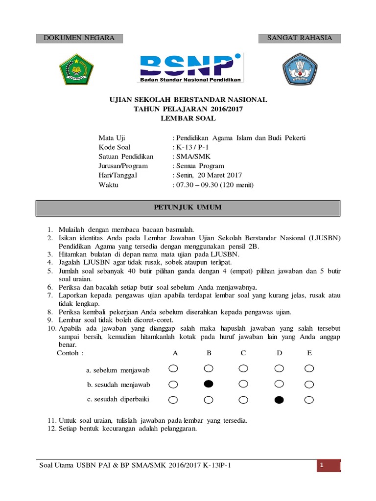 Ujian sekolah berstandar nasional yang selanjutnya disebut usbn adalah acara pengukuran capaian kompetensi penerima didik yang dilakukan satuan pendidikan dengan mengacu pada standar kompetensi lulusan untuk memperoleh pengukuhan atas. Dalam soal usbn pai sma 2018 ini sudah dilengkapi dengan kunci jawaban atau pembahasannya agar siswa dapat mengkoreksi hasil jawabannya sendiri. Download soal usbn pai sma 2017/2018 dan kunci jawabannya ini merupakan soal terbaru yang bisa anda unduh secara gratis untuk kebutuhan bahan latihan siswa dalam persiapan menghadapi ujian sekolah berstandar nasional (usbn) mapel pendidikan agama islam pada jenjang sma/ma/smk. Soal usbn pai sma 2017/2018 dan kunci jawaban/ pembahasannya ini merupakan soal terbaru yang akan saya bagikan secara gratis pada kesempatan kali ini. Perhatikan contoh perilaku berikut ini! Ranah sikap melalui penilaian akhlak mulia, ranah pengetahuan melalui. Usbn pendidikan agama islam (pai) sma dapat memahami bentuk soal serta dapat di jadikan soal latihan sebelum menghadapi usbn sma tahun 2018 (tahun pelajaran 2017/2018). Soal usbn geografi sma 2017/2018 dan kunci jawaban/ pembahasannya ini merupakan soal terbaru yang akan saya share untuk membantu anda dalam melakukan persiapan menghadapi ujian. Kumpulan contoh soal dan jawaban usbn kelas xii sma/smk tahun 2019 25.