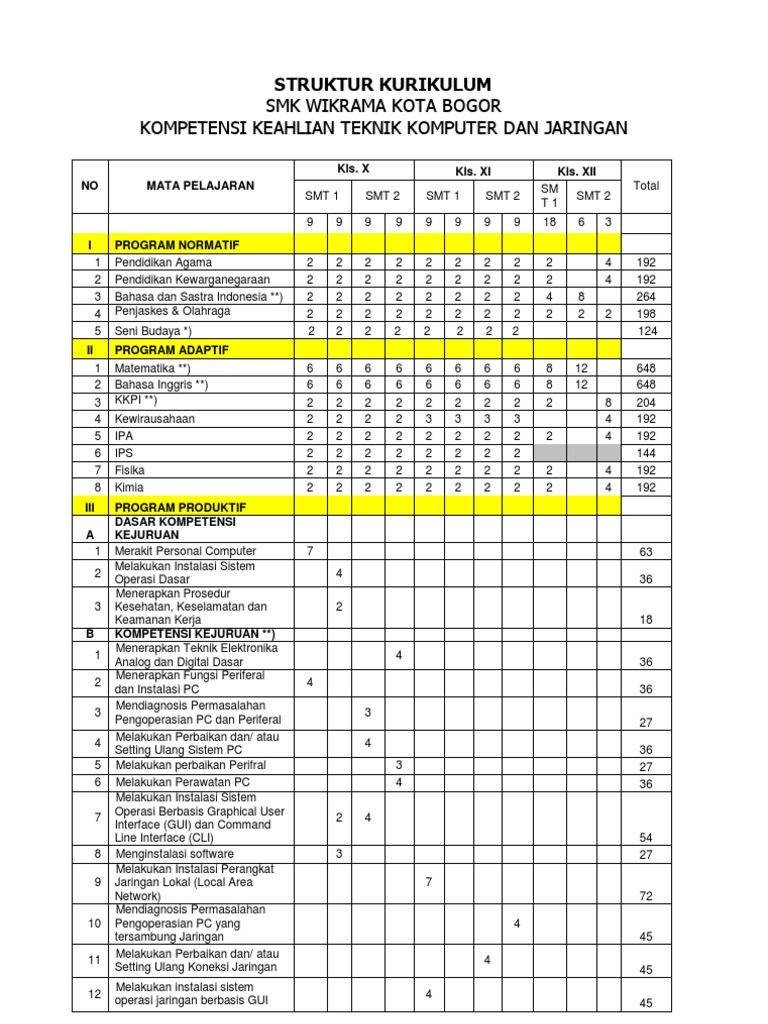 Struktur Kurikulum 2013 Revisi 2018 Teknik Komputer Dan Jaringan.